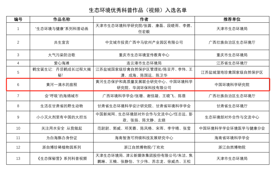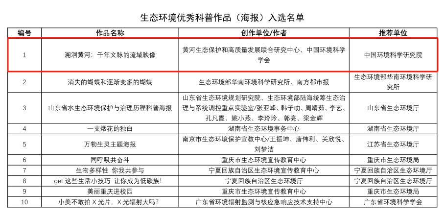 經(jīng)各地方、各單位組織推薦和專(zhuān)家評議,最終評選出優(yōu)秀科技成果科普化典型案例8個(gè)、優(yōu)秀圖書(shū)17部、優(yōu)秀展覽6個(gè)、優(yōu)秀科普短視頻20部、優(yōu)秀科普海報10個(gè)。其中,經(jīng)我院推薦的科普短視頻《黃河一滴水的旅程》、科普海報《溯洄黃河:千年文脈的流域映像》最終被評為2025年度生態(tài)環(huán)境優(yōu)秀科普作品。